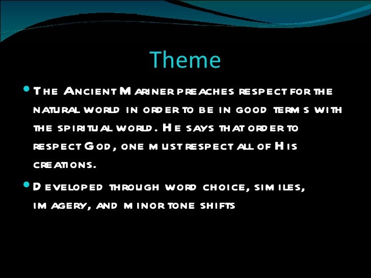 A Raisin In The Sun Walter Selfish - The Rime of The Ancient Mariner: Part 1 - Poem Analysis The Rime of the Ancient Mariner is a lyrical ballad i.e. a poem written in the form and style of a folk ballad which is usually written by an anonymous person. The ballad is a narrative song-poem, usually relating a . Rime of the ancient mariner analysis - with Sample Solution Breaking down How Stigmas and Media Influence Disordered Eating in Males Theoretical There are different organic, mental, and social factors that add to all conditions or scatters Fitcher and Krenn, This writing survey examines natural, mental, and social factors that impact confused eating, explicitly in guys. Mar 16, · In The Rime of the Ancient Mariner guilt and justice appear in the form of strange natural phenomena, as well as spirits. Theme 4 All creatures “great and small” are worthy in some way. The mariner discovers that even the snakes of the ocean can be beautiful. Essay On Diesel Service Technician