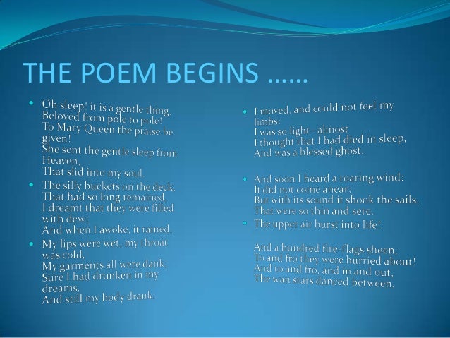 Truck Rollover Case Study - Apr 18, · Words 5 Pages. Rime of the Ancient Mariner. Close Reading of a Poem The Rime of the Ancient Mariner is a great example of a typical English ballad tradition. The poem, as a result, provides the reader with a lengthy narrative. The poem is a part of the Lyrical Ballads published by both Coleridge and William Wordsworth in by Samuel Taylor Coleridge. The poem The Rime of the Ancient Mariner consist of many different styles and poetic devices. Many have said that the poem itself is an allegory or a repetition. Prior to going into the details of the poetry and writing style used in the poetry, a brief summary . May 30, · This is apparent in his poem, “The Rime of the Ancient Mariner”, where Coleridge asks the readers to suspend disbelief in order to see the significance behind the supernatural or magical elements. The power of hypnosis or mesmerism is one of the main supernatural themes in “The Rime of the Ancient Mariner.”. Joyas Voladoras Analysis